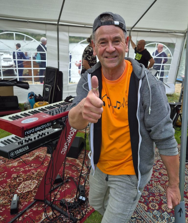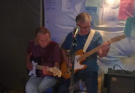 Hier ein paar Bilder von unseren ehemaligen Mitstreitern. Links seht ihr Tommy. Er spielte Klampfe und sang auch ein paar Songs. Unvergesslich seine Blues Harp.