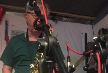 Unten seht ihr ganz links Peter, ein Bluesgitarrist und Sänger der ganz feinen Art. Gleich daneben der Saxophonist und Gitarrist Helmut. Sein Sax machte Gänsehaut, Dann nochmal zwei Momentaufnahmen im Studio und beim Konzert.