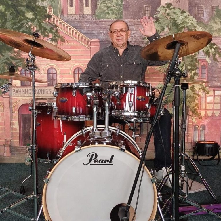 und der Eintretende sagt, dass dieser ab jetzt der Schlagzeuger sein müsste. Gute Idee: Denn wir