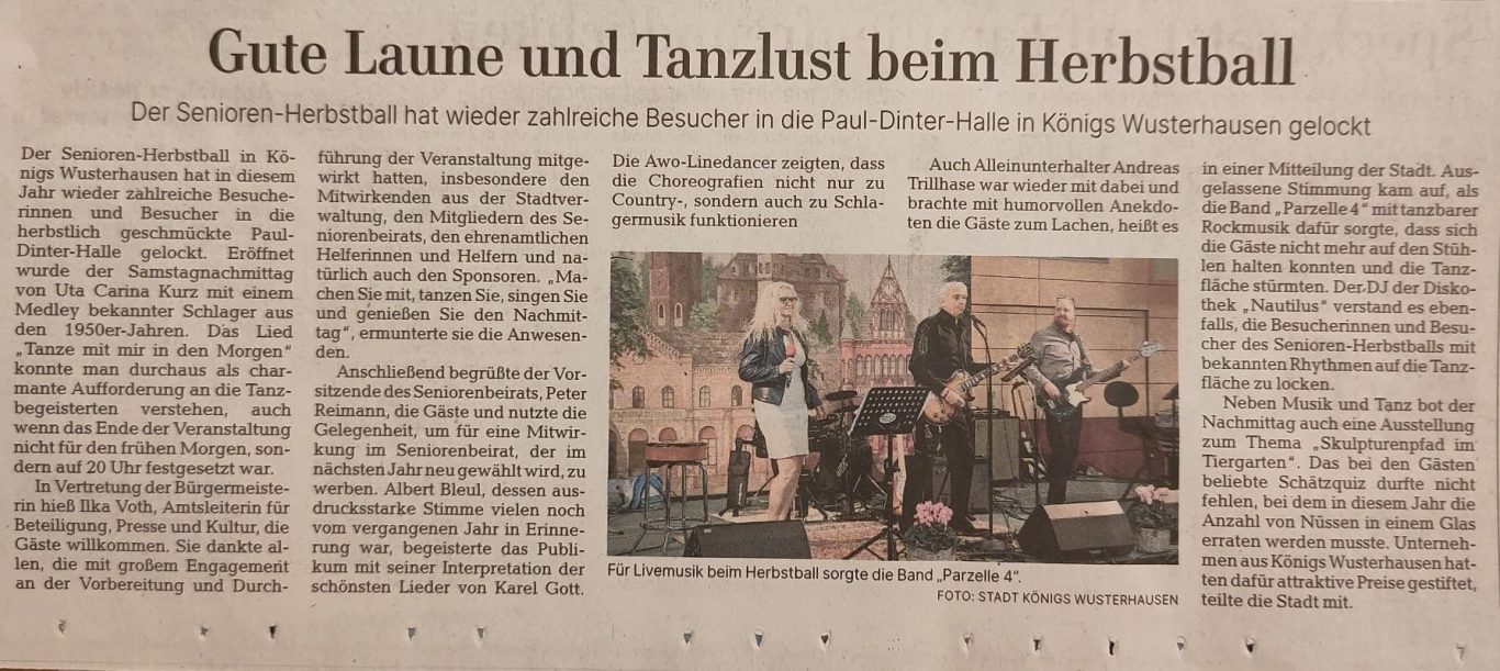 Konzert Seniorenball in der Max Dinter Halle am 15.10.2025